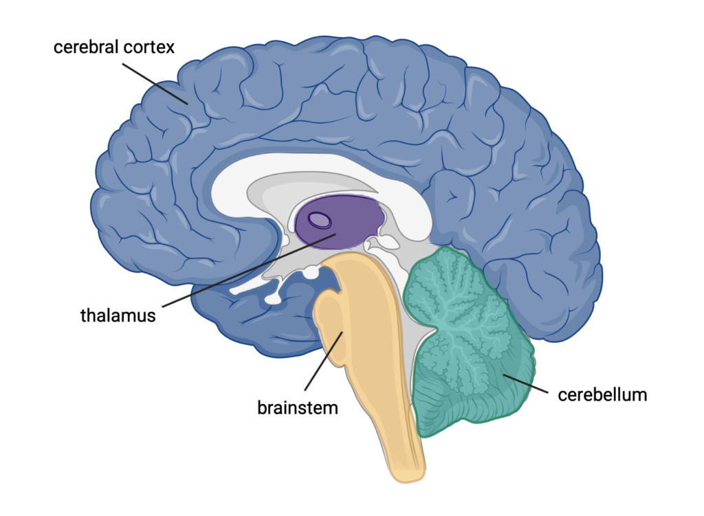 Figure 1: Diagram of major brain regions. Created in BioRender. Helmich, R. (2026) https://BioRender.com/6ua7xvy